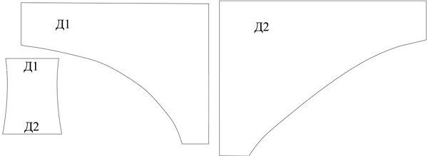 For this making you can use a ready-made pattern or to take your old bathing suit. Cut out details of swimming trunks D1, D2 and D1-D2 from the piece of fabric according to the patterns increased to the necessary size with account of an over-measure allowances for round stitches of 1,5 cm.