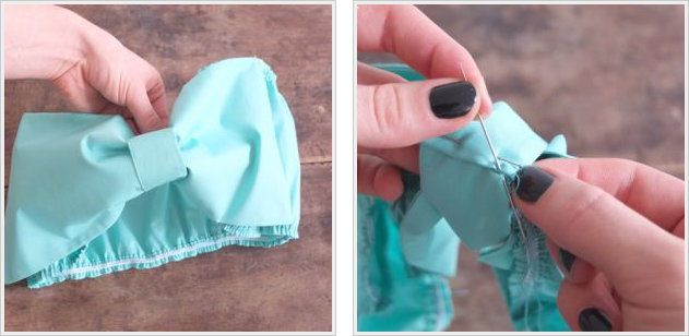 Fix to the bodice all of four edges of the bow in couple of stitches.