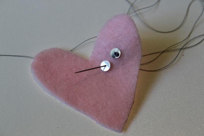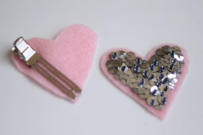 5. Now, we cover the whole free space with sequins, make one more heart that will be on the wrong side and stitch a fastener to the article. Then, we may assemble the brooch.