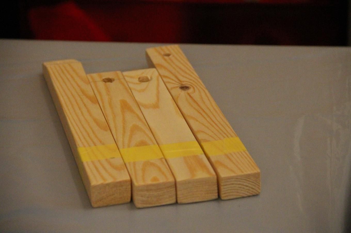 Now you’ll need to draw the "legs" of your future dog. To make it, paste the ends of the beams over with a masking tape and paint them with black paint.