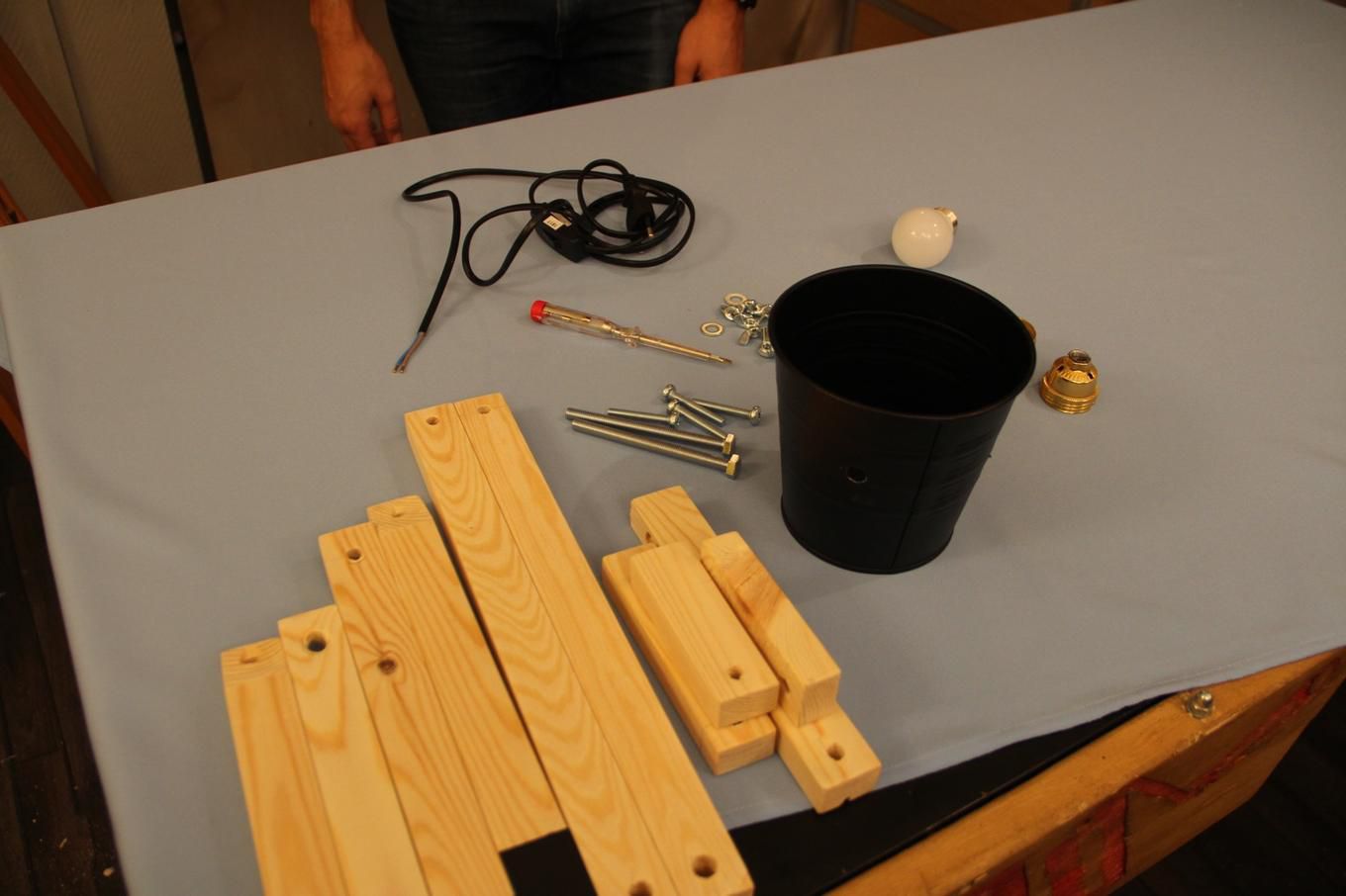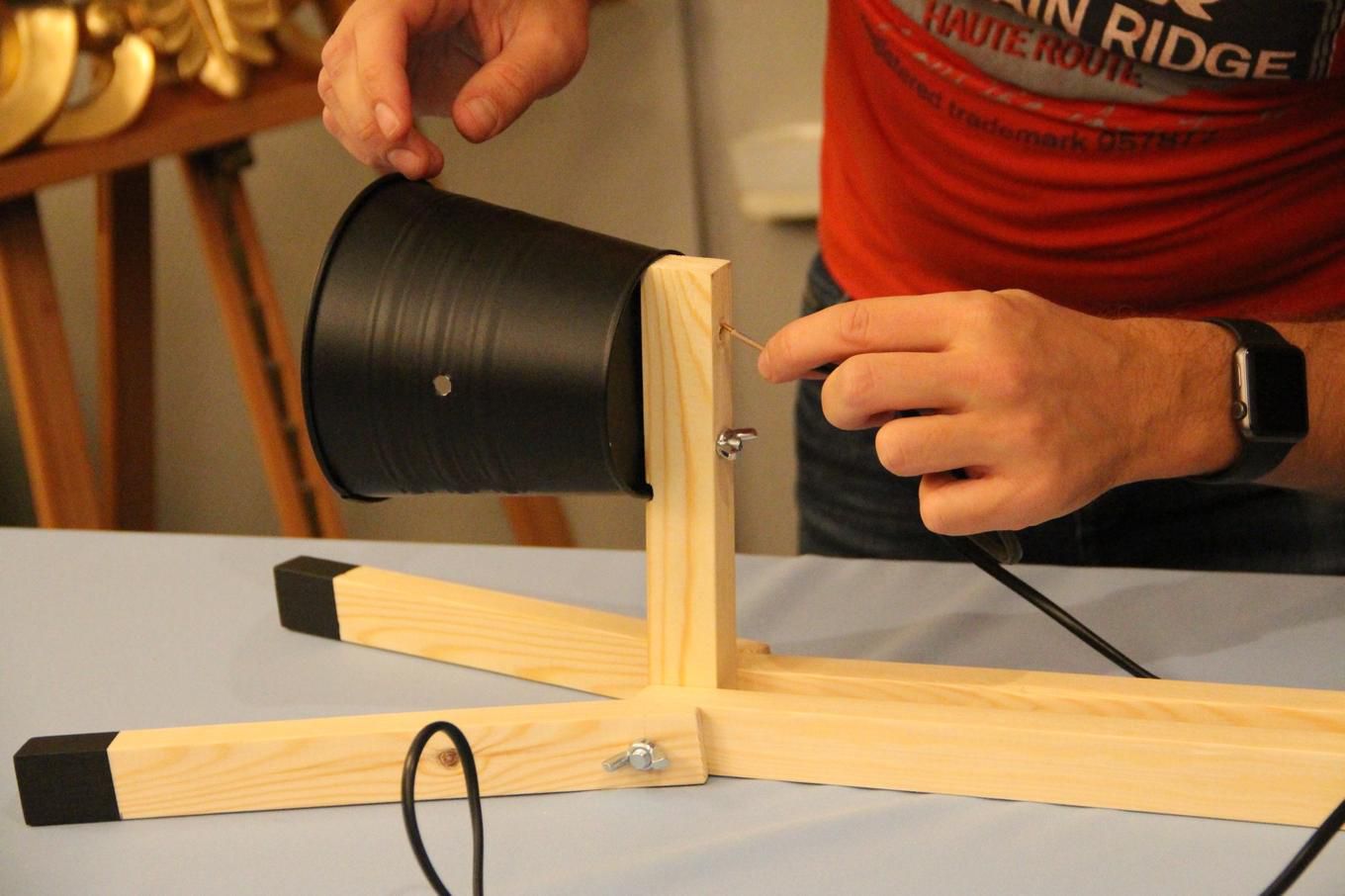 You’ll need to put the details so as to give the lamp the necessary shape. Use 6 screws for installation. Just fasten the pot, put the electrical wire through it and screw in a lightbulb.