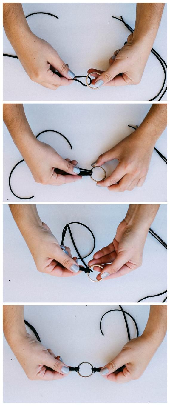 First you need to fold one of the laces and push it through the hole of the ring so that the other end of it is in the loop.