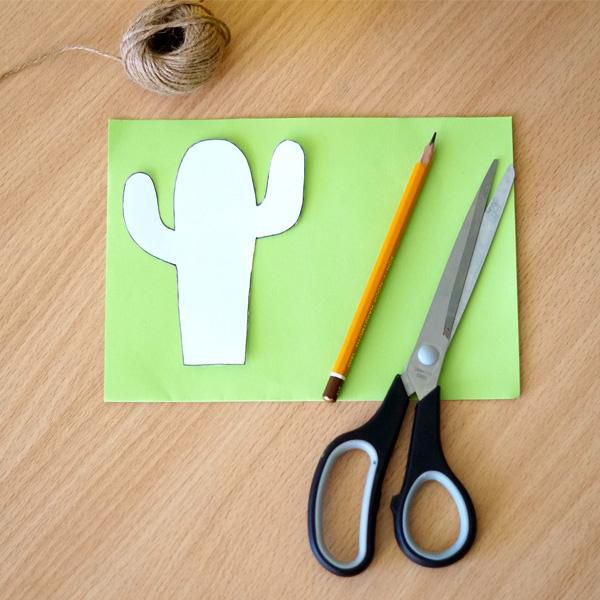 You can also make small cute flowers out of pink paper and then stick them on the cacti of dark green color. The next step is to cut the rope of the length you need off and to glue it to the back side of each cactus using pieces of plain paper.