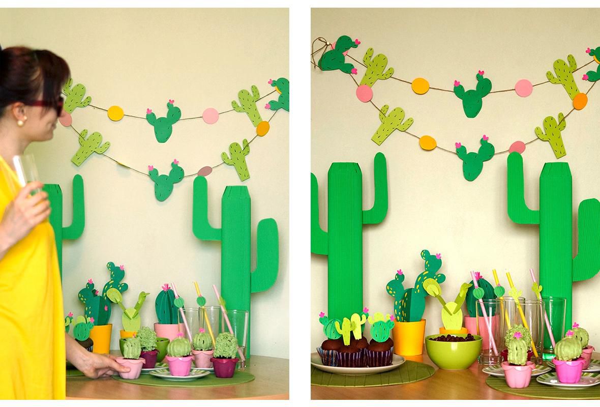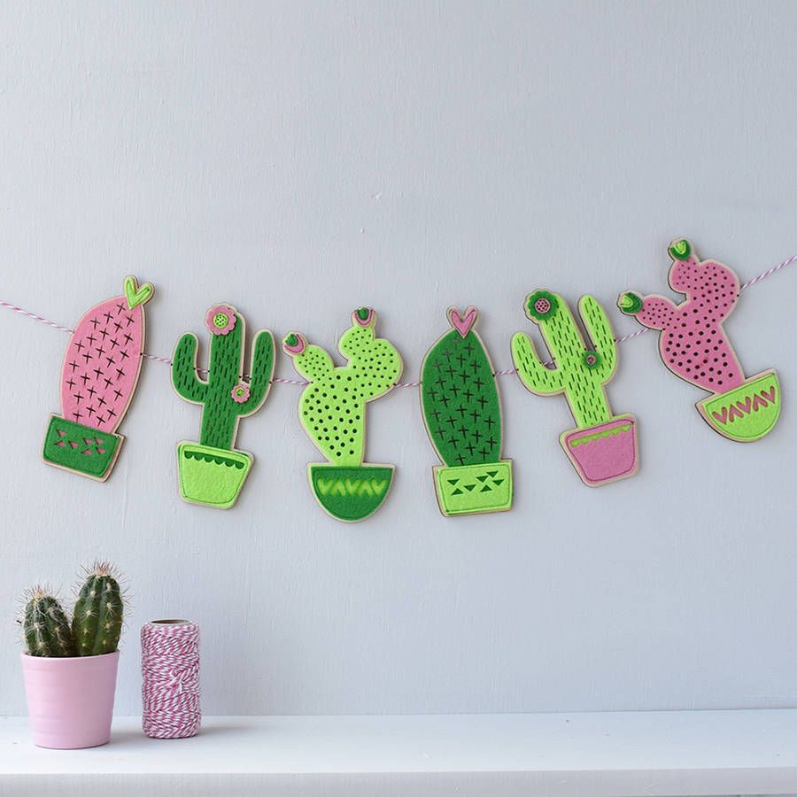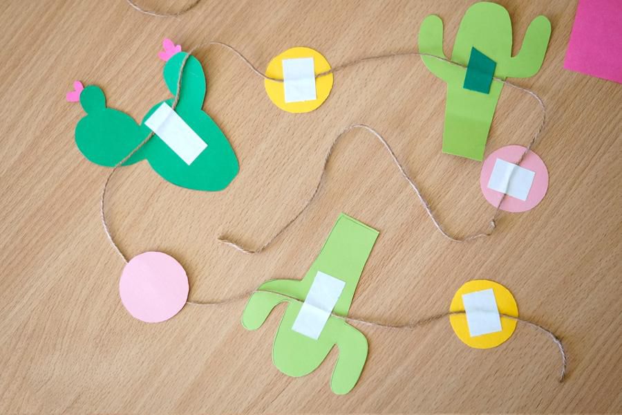 Cacti and yellow circles should alternate with each other however you like, or you can make the order on the garland the same, as it is shown in the photo.