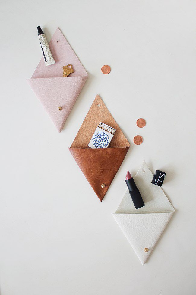 Their size depends only on your wishes. Using this template, you will need to cut the necessary number of leather blanks. Then, according to the photo, you need to fold material in the form of a pocket and then mark the place of where the fastener will be installed.