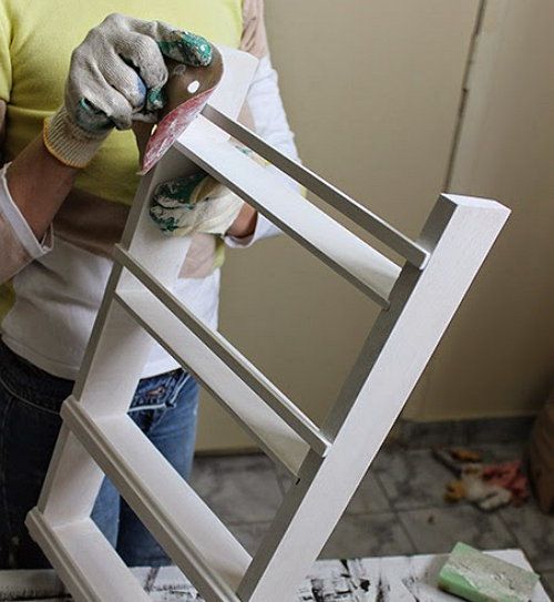 Glue the first two to the edge of the shelves and the third and fourth leaving a 40-millimetr margin of the edge. Fix the shelves with headless nails as well. Wait till the glue is completely dry. Prime the rack one time and sand it with micro grit type of sandpaper.