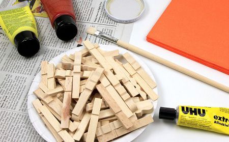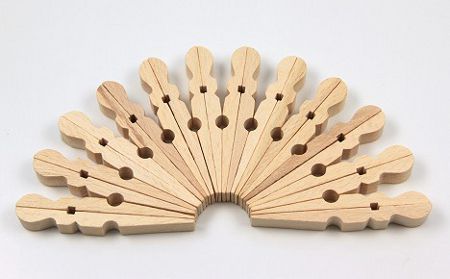 The photo below shows one side of the napkin holder. The details are assembled, but not glued yet. To make one side you will need 12 clothespins. First, we need to paint them and then glue together.