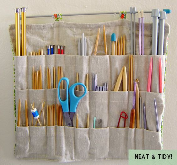 If you are engaged in knitting or drawing, painting, you probably have a lot of needles, brushes or pencils. It is convenient to arrange them, by the diameter in the purse - such as shown or a canvas with sewn pockets.