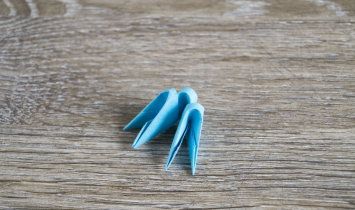 Step 6. We form the fifth row of the Easter modular egg, putting a module on two elements of the module of the previous row.