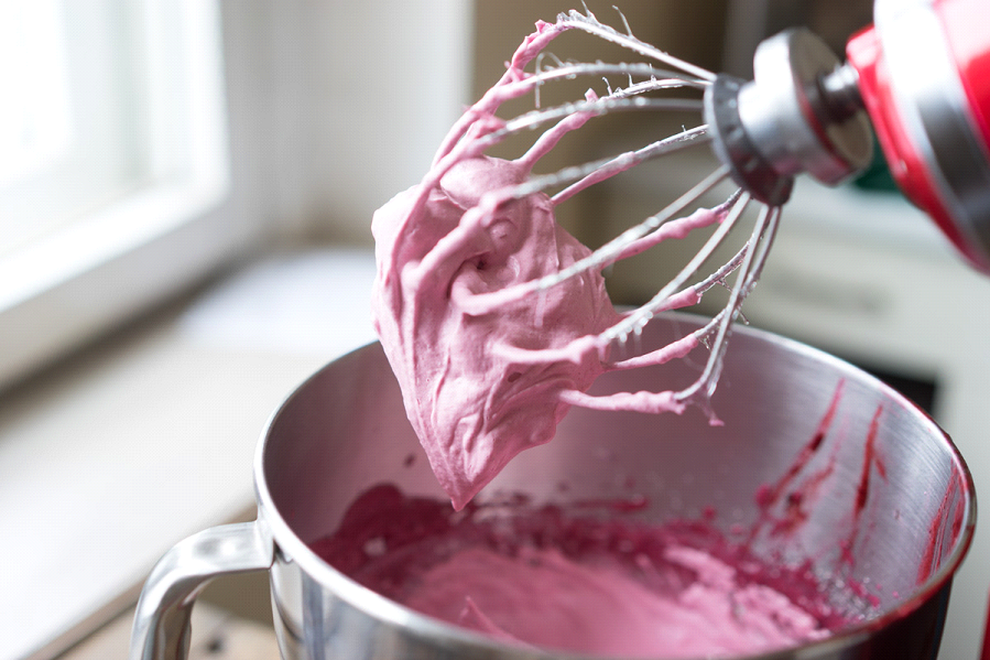 Thereafter beat the mass for couple more minutes to strong peaks, in order to get a smooth, glossy and rather fluffy mass. Whisk jam in another bowl and, if necessary, strain it from seeds.