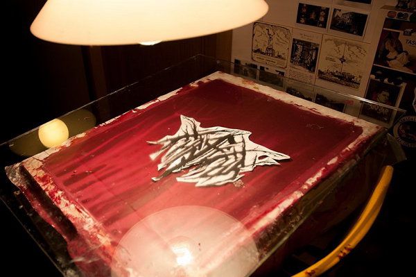 Open both the emulsion and the sensitizer in the dark room with a red light. You need to add some water to the sensitizer and mix it together with the emulsion. After that you can spread this mix on the silk screen from both sides. The emulsion should be spread evenly, with no gaps left. Leave the screen to dry for 30 minutes. Additionally, dry the screen with blow-drier after that time.