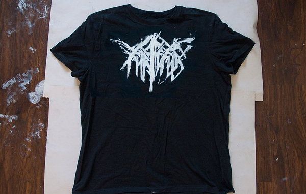 Prepare the image with the black ink. We decided to make a classic one: a white print on the black t-shirt. The image is a special logo that we designed in black-metal band style. It reads FURFUR.