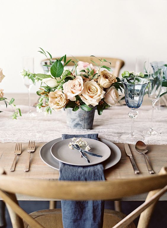 As for flowers, it will be better if there’s no more than 3 types of flowers and they are not very different in colors and sizes. The bigger is your table – the taller flowers you need. Big and lush bouquet is not really good idea for a small table for 4 persons.
