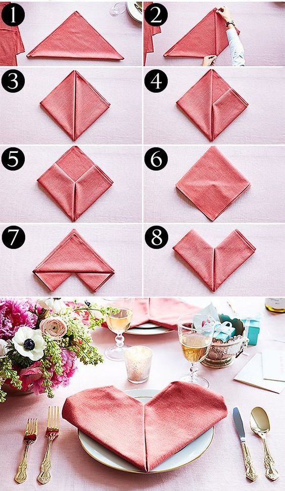 For romantic evening you can choose DIY napkins in form of heart.