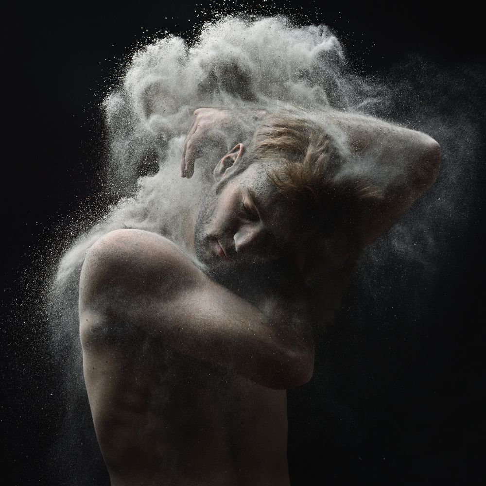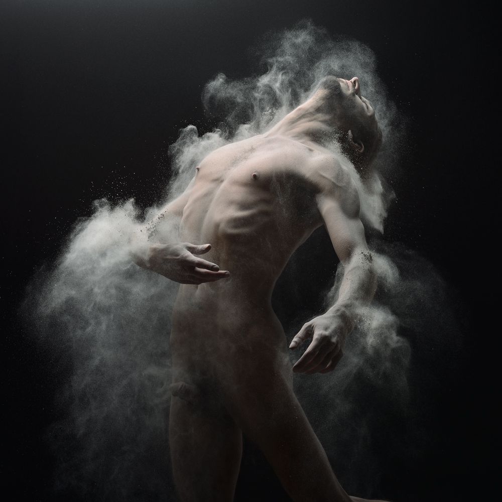 The nude dancers present us a vision of the pinnacle of the human body. Just like sculptures in Ancient Greece and Rome, Valsecchi is revealing the real beauty and hidden perfection of the nude human body, though in a more expressive style here. At the same time together with clouds of ashes it’s something ghosty and obscure in every photo. Ashes correspond to the concept of reincarnation here and human’s poses attract with their diversity and dynamic.