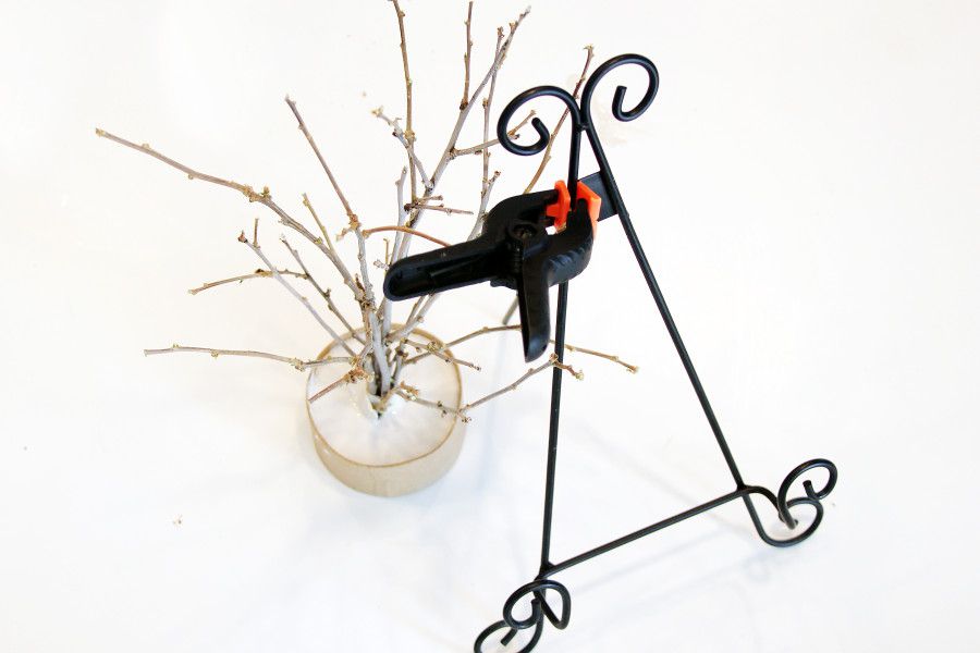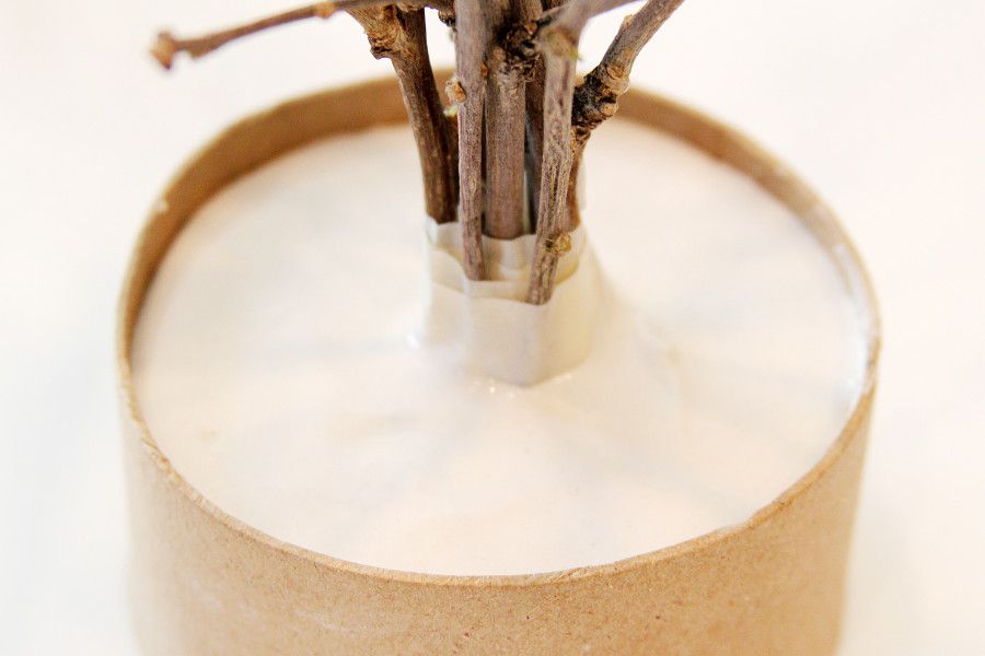 Next place the branches there, in the center. Make sure they are fixed well to stay in the same position (forever lol). Use any known by you methods to secure the bundle till plaster is hardened, it's very important here. Perhaps you'll need some additional objects.