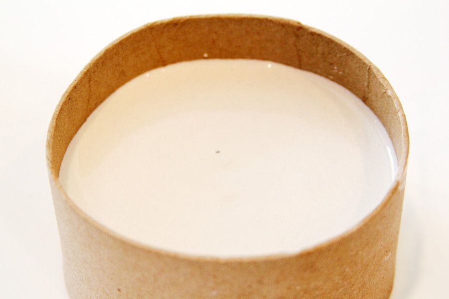 Once the plaster has got to a smooth consistency, put it attentively to the paper mache box.