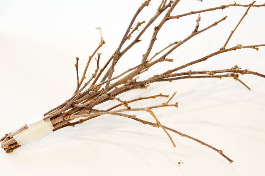 Find branches for your tree. Choose any color, size, appearance you prefer. Number differs too. Try to create a not very big beautiful bundle. Trim them and fix together with a thin rope or yarn.