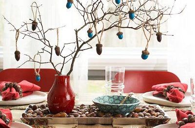 For the following crafts you will need dry twigs and acorns. Acorns should be painted with acrylic paints. Then hang them on this dry twig. Put the branch with acorns in an attractive vase. Now just let your visitors admire this unusual decor element.