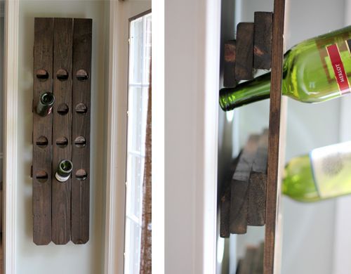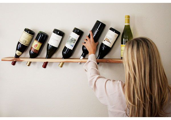To make a wine rack like this you’ll need a few long wood planks. Make some holes for wine bottles in them. Fix the short planks from behind stairlike. The bottlenecks should be inclined a little.