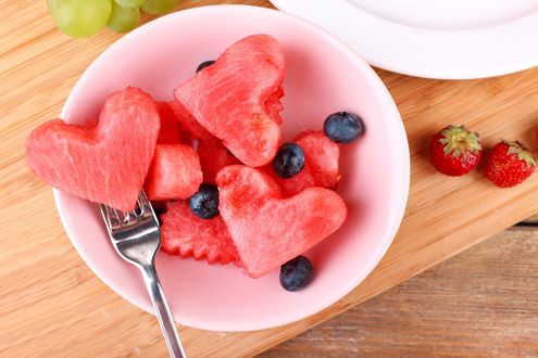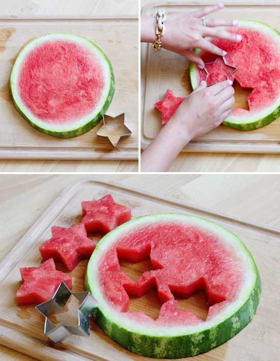 Cut out some figures out of watermelon with the help of variety of molds for baking.