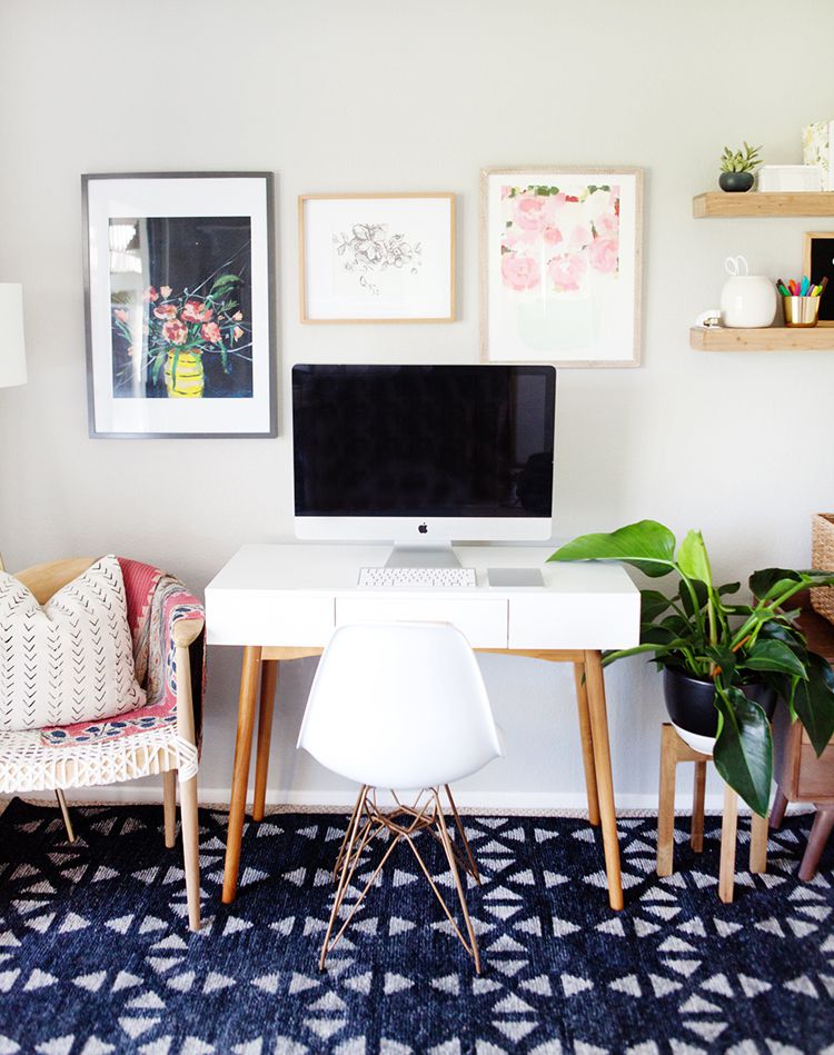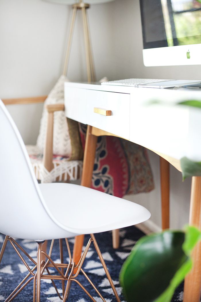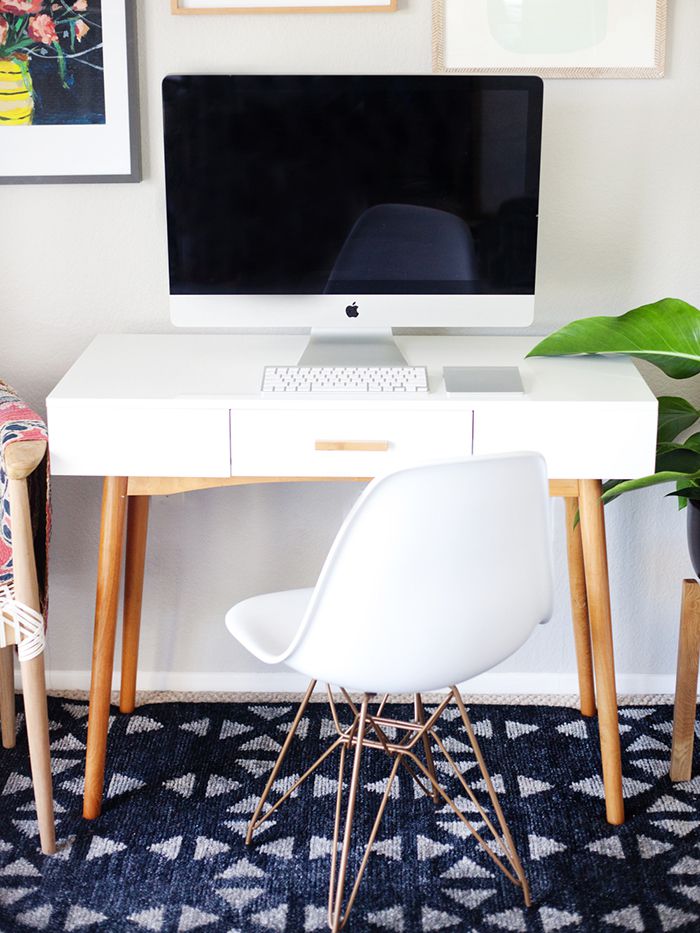 It’s amazing to balance the space with clean lines and white pieces. White furniture or accents bring a breath of fresh air to your little office. It always goes with everything!