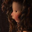This little bundle of love is a 12" Mulberry Baby. He is just the right size for little hands to dress, carry and cuddle. He is hand washable and can be air dried in a warm place. His hair is light brown mohair, which can be washed, brushed and styled. He is entirely handmade, from De Witte doll jersey and clean sheep wool. His head has been needle felted firmly, so he will keep his cute smile for years to come. Triple stitched and stuffed firmly, he is a real heirloom, made to age beautifully and last generations. He comes with a cotton velour nappy, cotton dinosaur print vest, matching hat and neutral chunky knit booties. Baby Tommy would love to go home to be played with, but he would make an adorable addition to any adults' doll collection too. As his hair can shed small fibres I would only recommend him for children 3+.