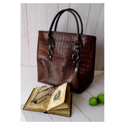 This exquisite Tote Bag has been beautifully crafted by blending vegan leather with gently re-purposed, reclaimed, and recycled items. The Chocolate faux reptile leather is the perfect color that can easily transition from a work-handbag to an evening out with friends with the greatest of ease. // Approximate Size // Bag size: (H) 12” x (W) 16” x (D) 5” ( 31 x 41 x 12.5 cm) Handles: (L) 13” x (W) ½ ” (33 x 1.5 cm) Lined in a complimentary cotton Paisley print, with lots of inserts and pockets. There are four (4) credit card slots, which are useful for holding your business cards, parking lot tickets, and of course credit cards. You can place your car keys inside the zipper pocket, for easy access. Available from my Etsy shop https://www.etsy.com/shop/Gennhaio