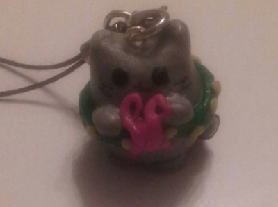 A cute Christmas cat holding a Christmas wreath. The item is handmade, please handle with care. Please have the item keep away from water and in direct sunlight for a long time. The items might look different from the photo because it is 100% handmade.