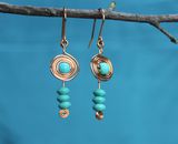 These bohemian earrings with fun spirals are made with raw copper wire and reconstituted stone beads. They'll go with just about any causal look.