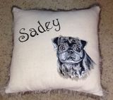 Custom designed and hand painted portraits of your" Fur Baby". Whether it is your pet or your favorite breed, I can hand paint it on a beautiful 15x15 pillow with pretty tapestry back side with fringe or ruffle. Prices start at $65.00 (one pet per pillow) and I also offer "Patch Pup" pillows that are $125.00 each. Prices DO NOT include shipping Please feel free to go to my Facebook page and even share it! Go to: Kathy's Country Crafts @customcountrycrafts