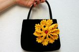A Lace pattern Jewelry in large size. Crochet flower brooch with 10 twisted petals ready to pin it on the blouse, the coat, the handbag you want... A wonderful combination lace pattern brooch that comes in diameter 6.4cm or 2.5in and with a wooden bead in the middle. The yarn is a mix of acrylic and wool. An easy wear brooch for every day use or an impressive and special appearance!