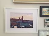 a watercolor cityscape painting of romantic Krakow during a warm summer sunset on watercolor paper size 40x30cm signed in the front sold without frame