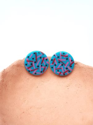 These colourful 80s style studs is a must have for this summer. They will be minimalist yet playfull, bright and eye-catching accent of Your outfit whether it be a pair of jeans or a little black dress. SPECIFICATION of the studs: - 100% handmade; - materials used: polymer clay, simple metal posts; - weight: less than 2 grams (~0.07 oz.) each stud; - measurements: diameter of the studs 2.3 cm (0.9 in.); - colour tones: sky blue, turquoise. The colors can slightly differ from the photo because of photography lighting and monitor settings; - earrings are coverred with glossy varnish; - due to the handmade nature of this item, earrings may vary slightly in sizes and color.