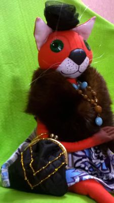 Madlen is a fashionable cat. She loves accessories, hats and bags. The doll has a wire-frame and split-pin joints. Clothes can be taken off. It can sit and change the posture. The pattern is created by the author.