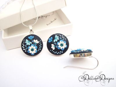 A perfect gift for you, or for someone dear: an elegant, handmade, unique piece of art! This item will be created especially for you! The flower embroidered cabochons are made entirely by hand, with no molds. Tiny pieces of clay in brilliant colors will be applied carefully, to bring life to this lovely piece of jewelry. https://www.etsy.com/shop/DellineDesigns