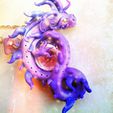 Necklace with a seawater effect pendant made of resin on silver plated metal base and decorated with real shells and iridescent glass microspheres.