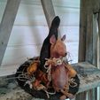 This one of a kind Old Crow is made from cotton fabrics, hand painted, stained and baked in oven. He stands by him self about 12" / 30cm tall. He is made without any patterns. He has a hat decorated with antiqued bell, jute and button. The bow is made from cotton and jute. The eyebrows, mustache and beard is made from beard moss. The eyes are made from wooden beads. His eye glasses are made from iron wire. The toes are sticks and iron wire. He is for decor use, not a toy.