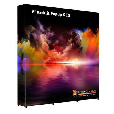 The Backlit Pop Up SEG 8’ Tension Fabric Display combines easy, tool-free setup with brilliant edge-lit LED illumination for high-impact visuals. These tension fabric trade show displays feature a front visual area of 86.75” by 86.75”, with full print dimensions including bleed at 90.75” by 90.75”. The end caps display at 12.375” by 86.75”, with bleed print size of 16.75 x 90.75”. The overall display height stands at 88.5”, and a one-year warranty is included. To place an order, visit our website now!