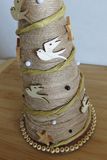 This rustic mini Christmas Tree is 10.5" long (26.5 cm) and is perfect for decorating a room or an office for the holidays. Made with a Styrofoam Cone,Jute Rope, Wooden Stars, Wooden Heart, Wooden Flowers, Dark Jute Rope, Jute Twine, Wooden Dove. SIZE: Base diameter is 5" ( 11 cm) A perfect gift for the rustic decor lovers.