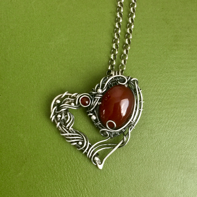 This is one of a kind 925 and pure silver heart gemstone necklace for Woman. It is intricately hand crafted featuring two deep orange / red Carnelian gemstones. This magnificent piece is inspired by fantasy fiction literature and ancient mythology. It has a unique presence. The designer clasp is hand made into a beautiful heart shape to follow the pendant’s motif. The necklace is adjustable! The heart shape part connecting with the hook clasp serves as an additional charm when the necklace is worn to its full length. It can be worn in any length from chocker up to a 59cm necklace as it can hook to any part of the Rolo link chain. COLORS: ★Red ★ Silver MATERIALS: ★ 925 Sterling Silver ★ 999 Fine Silver ★ Carnelian Gemstones MEASUREMENTS: ★ Necklace: up to 59cm (Adjustable from chocker to mentioned size), ★ Pendant: 47x38mm ★ Large Carnelian cabochon: 13x18mm ★Small Carnelian Cabochon: 4mm See more Carnelian Gemstone items for sale in my shop: http://etsy.me/2FgJhCW See other Sterling Silver items in my shop: http://etsy.me/2CAAg4M See other Necklaces in my shop: http://etsy.me/2sHtxpF BACK TO THE SHOP: ElaineJewelryDesign.etsy.com SEE MORE of my jewelry on Social Media: Instagram: https://www.instagram.com/elainesjewelrydesigns/ Facebook: https://www.facebook.com/ElaineJewelry Business Site: https://ElaineSieraden.nl ☆All Photos, Designs & Text Copyright © 2010-2018 Elaine Jewelry Design (Lapis Horizon)