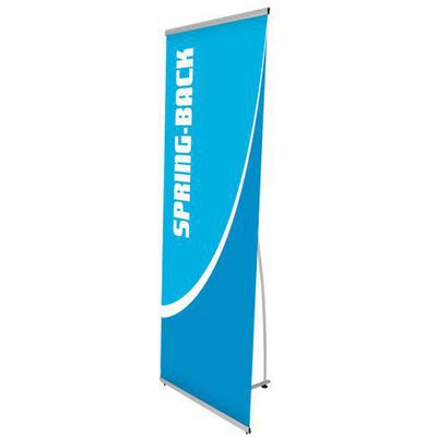 The Lightning portable banner stand supports a 31” by 78” tension-mounted graphic. It features snap-style top and bottom rails, along with a pivoting foot for added stability. This stand comes with a three-section fixed-height support pole that measures 78” for maximum reliability without any moving parts. It is manufactured by Orbus banner stands and features a silver anodized finish. It includes both a carry bag and a protective inner bag for the graphics.