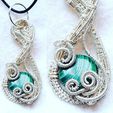 Green banded Malachite 20mm natural gemstone. Wire weaved in Gold plate and silver plate non tarnish. And free leather necklace or aluminium chain cut to required lengths