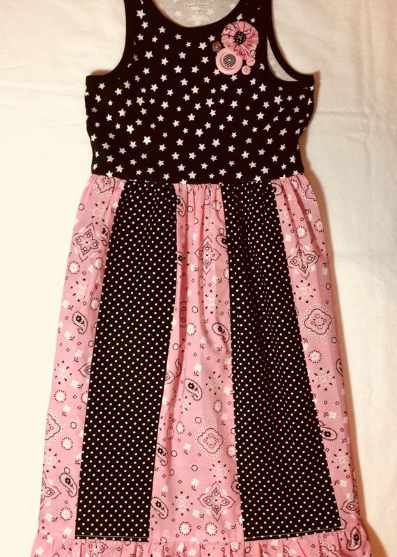 This dress is my original design so your little girl will have a dress like no one else. The quilt style bottom with small ruffle at the bottom along with yo-yo and button flowers on the bodice gives this dress a little flare. All seams are finished to prevent fraying when washed. • Length: 29 Inches (tea length) • Style: Sundress or Sleeveless T-Shirt Dress • Custom Orders are Welcome: Message with you Color and size preference. Contact me with any questions