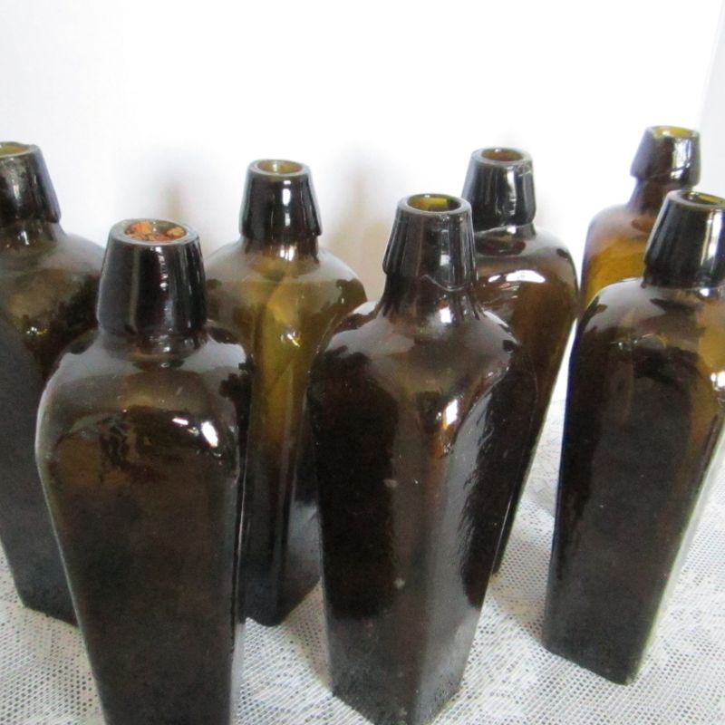 7 Antique 1800s Relic " Pirate " hand crafted hand blown gin bottles