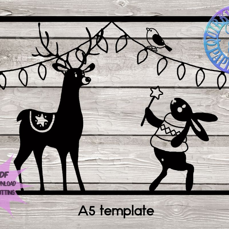 FILE NAME: 'A Christmas Wish' - Bird & Bear's Xmas LICENCE TYPE: Commercial Use ORIGINAL SIZE: A5 CATEGORY: Papercutting template STYLE: Positive cut FORMAT: JPG|PDF|DXF|SVG PRICE: £3.50