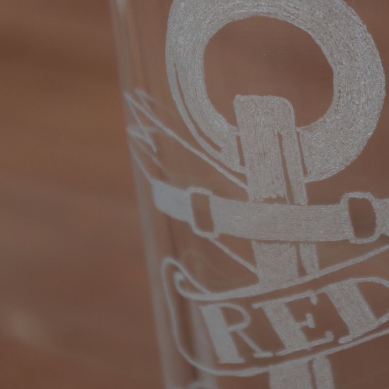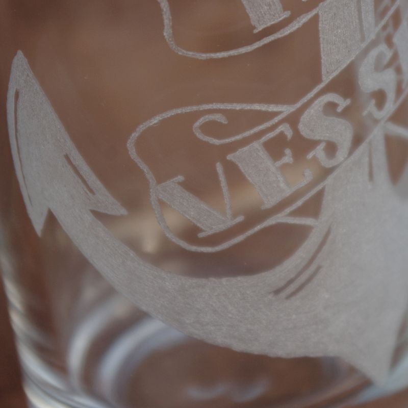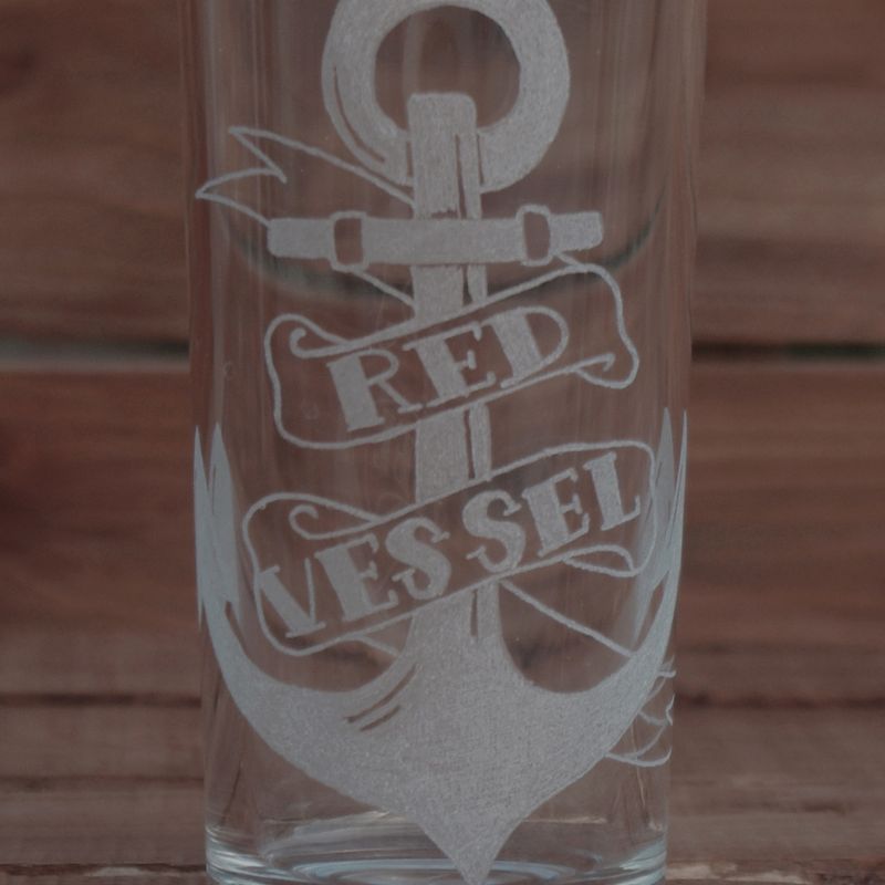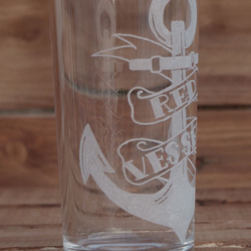 This anchor glass would make a great birthday, anniversary or christmas gift for anyone interested in sailing, the sea or traditional tattooing. This half pint glass has been engraved by hand and features a large anchor design. SHIPPING FROM THE UK - Shipping Prices Vary - www.redvesseldesigns.com