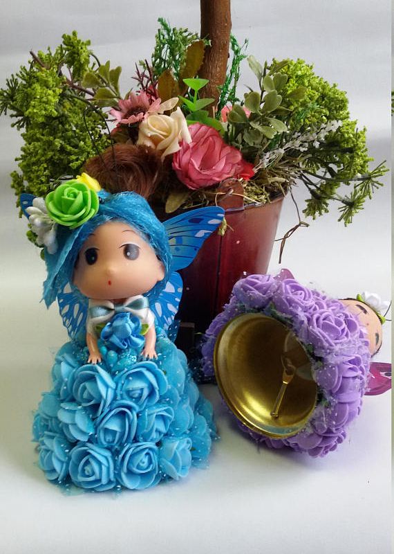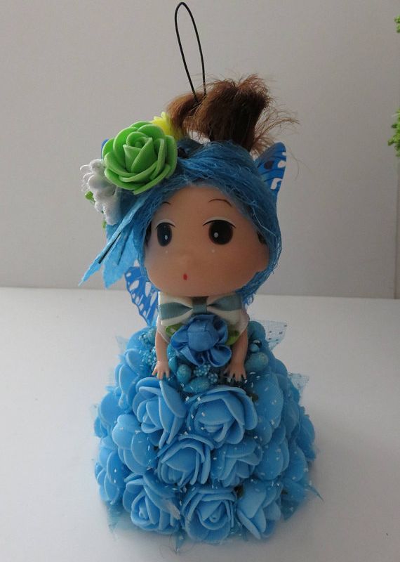 ANGEL CHRISTMAS ORNAMENT, BLUE DOLL ORNAMENT, FLOWER DOLL BELL ORNAMENT