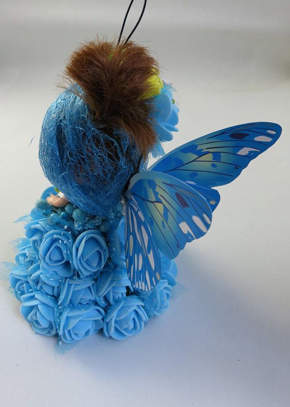 Angel Butterfly Blue Christmas Ornament: Based on my original design : Clay Pot Dolls, I created this Butterfly Lady Blue, a Christmas Tree Ornament. This unique doll is a bell....so hang it on a tree and shake the branches gently to listen to this Christmas lady. SIZE: 5" tall and 4.5" wide including wings . ( 12.5 cm x 12 cm) PLEASE NOTE: FOR DECORATION PURPOSES ONLY!