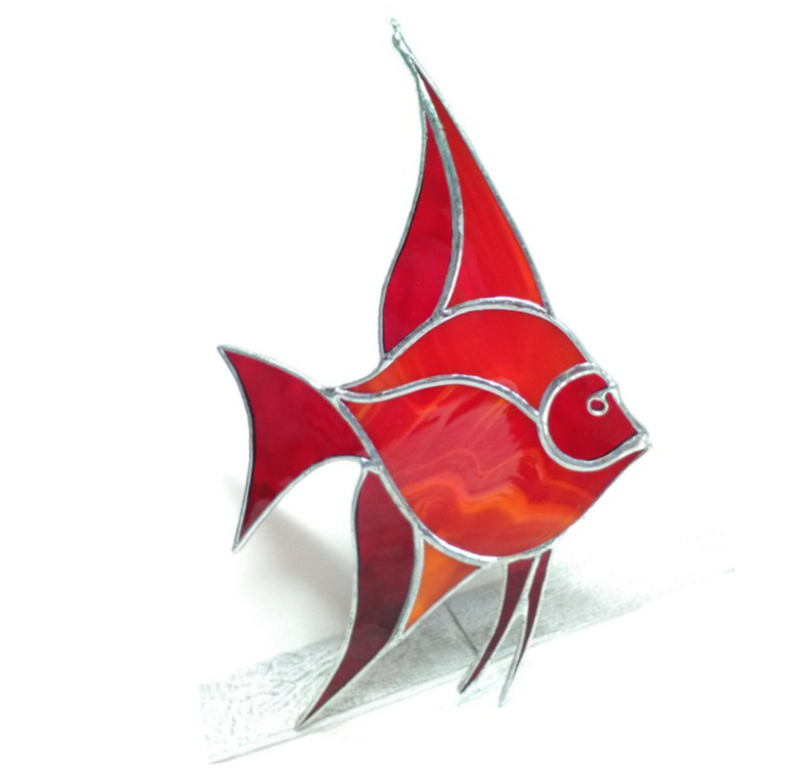 Angelfish Suncatcher, Red Tropical Fish Window Decoration, Ocean Life Angel Fish